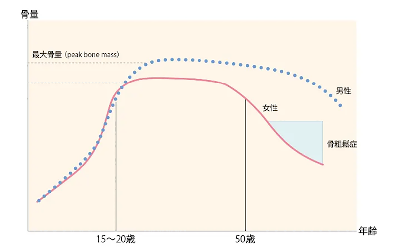 大関:カルシウムは骨に沈着することで骨を強くします。目を向けたいのは骨量です。子どもの頃から20代のピークへ向けて上昇し、これを過ぎると下降の一途をたどります。そのため、カルシウムを蓄えて維持していく必要があるのです。牛乳などの乳製品はカルシウムを豊富に含みますし、それ以外にも成長に欠かせない多くの成分が含まれています。全身の成長に重要なカギになる食品と言えます。