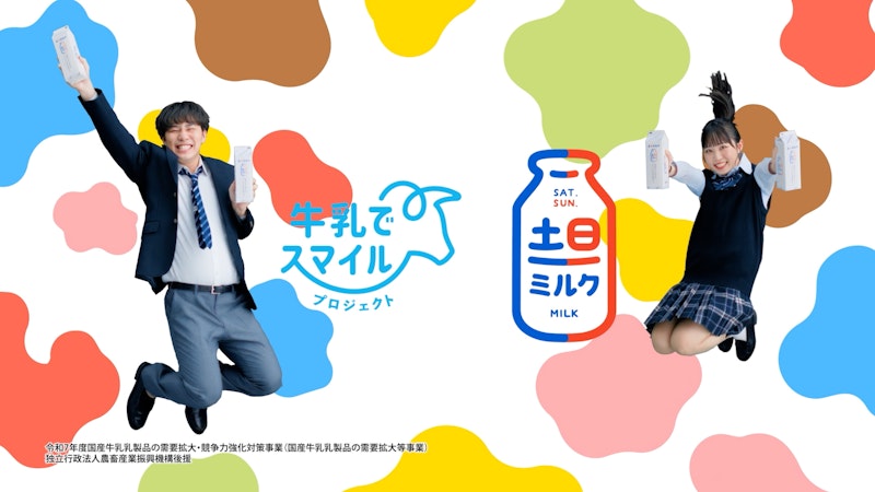 学校給食を卒業したあと、なんとなく“白い牛乳”から距離ができた気がする。そんな高校生・大学生の実感に寄り添いながら、「これからの牛乳の楽しみ方」をいっしょに考える企画としてスタートしたのが、『ENJOY!YOUR MILK by土日ミルク』です。国産牛乳乳製品の需要拡大を酪農乳業関係者が一丸で進める「牛乳でスマイルプロジェクト」の一環として、2022年12月より学校給食がない休日にも牛乳・乳製品の飲用や利用を促進するための取り組み「土日ミルク~給食のない休日はおうちで牛乳を飲もう~」の新たな企画として、高校生・大学生と酪農乳業関係者、クリエイターがともにアイディアを出し合い、PR動画とショートドラマの2本を制作しました。