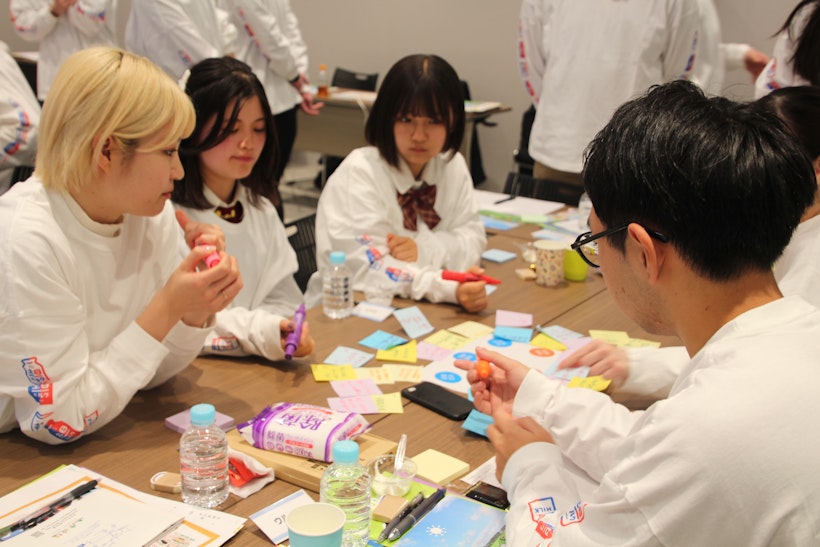 ワークショップには高校生・大学生11名と酪農乳業関係者4名が参加。学生からは「白い牛乳は飲まなくなったけれど、ラテはよく飲む」「高校に入ってからは、プロテインと一緒に飲むようになった」といった声も挙がり、“牛乳離れ”とひとことで言い切れないリアルな実態が共有されました。