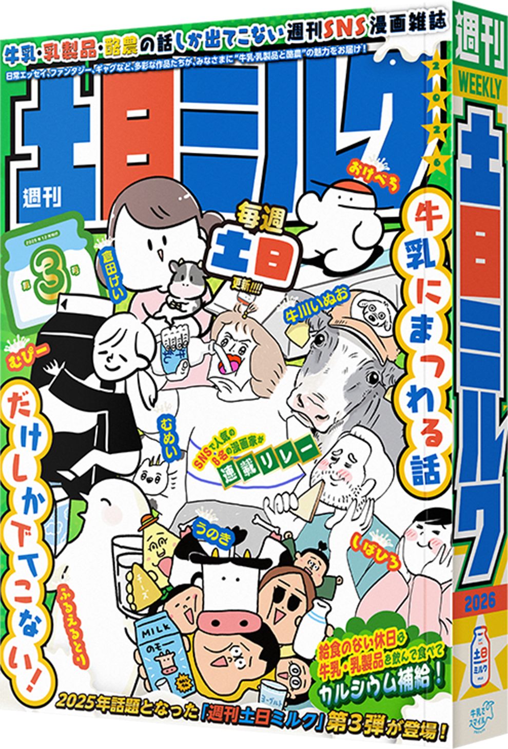 週刊土日ミルク第3弾が開始!「給食のない休日はおうちで牛乳を飲もう」。このメッセージを毎週土日にリマインドするために、SNS漫画シリーズが始まりました。