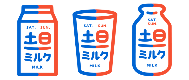 土日ミルクのロゴマーク・ロゴタイプのセットです。セットは、印刷に適したCMYK版、WEBなどのデジタルデバイスに適したRGB版の2種類です。