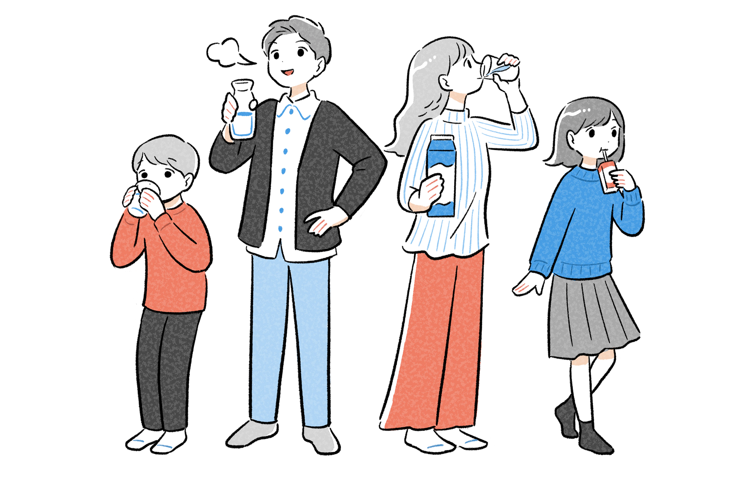 牛乳に含まれるカルシウムは、骨の成長や健康な骨の形成に必要な栄養素。しかし今、1日に必要な小中学生のカルシウム推奨量(650~1,000mg)に対して「給食のない日」は小中学生で200~470mg(牛乳180~530mLほど)も不足しています。そのためにすべきことは1つ。それは…給食のない休日は、おうちで牛乳を飲むことです。